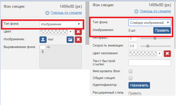 - изменить тип фона на СЛАЙДЕР ИЗОБРАЖЕНИЯ